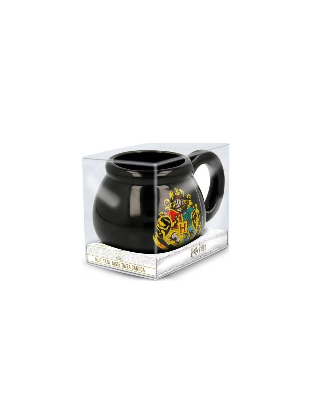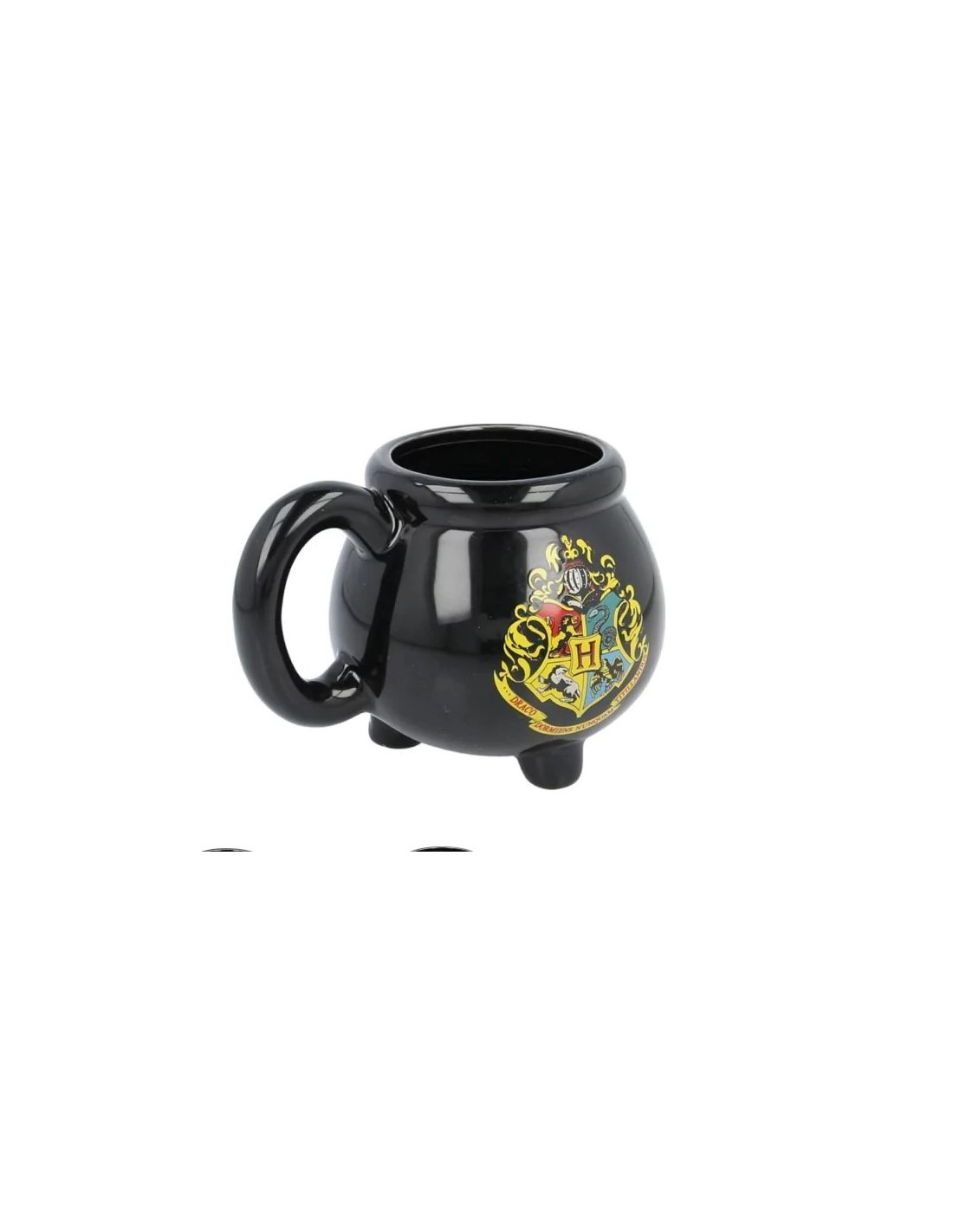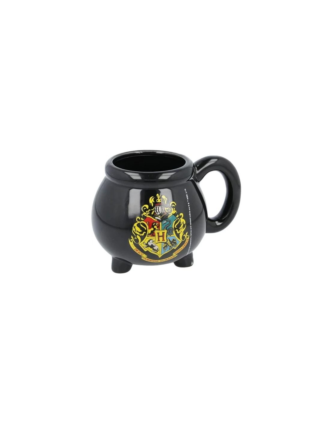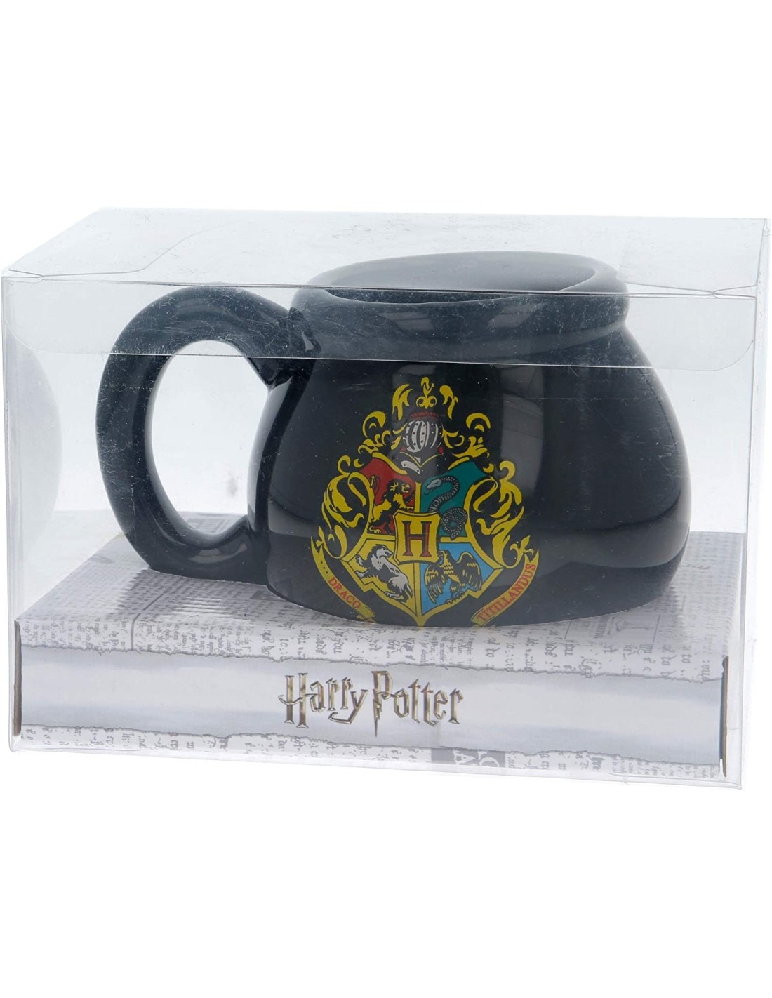 Taza de cerámica en 3D con la forma del caldero de la saga de películas Harry Potter con el escudo de la academia de magia Hogwarts.