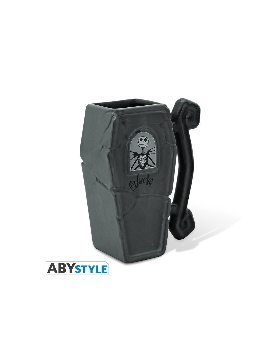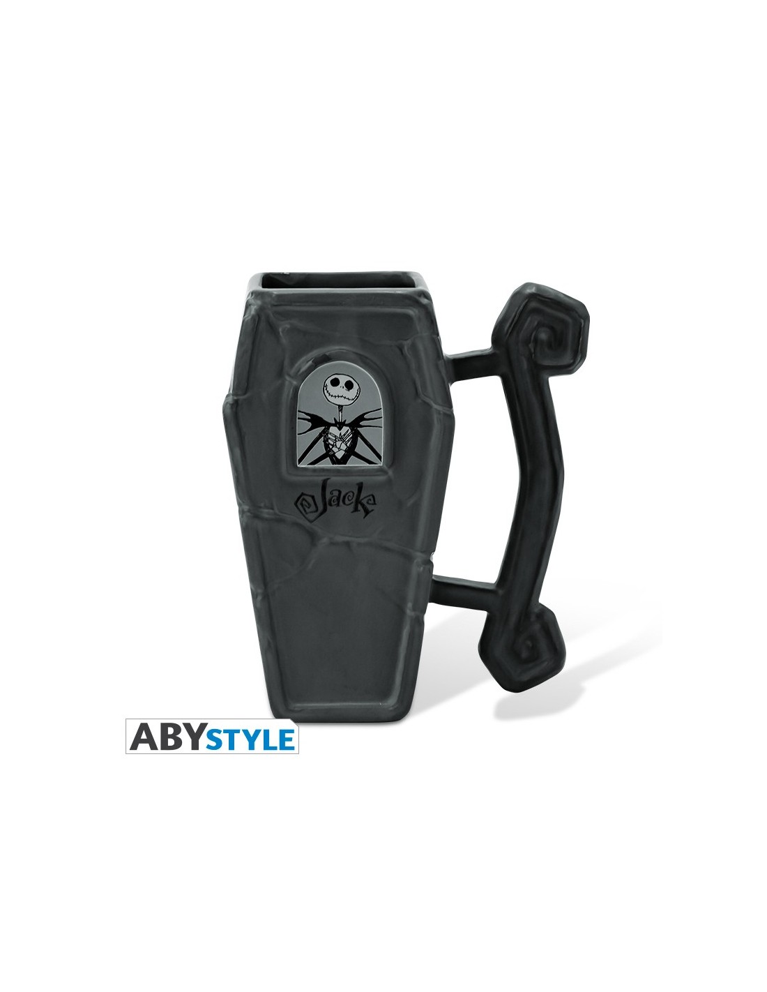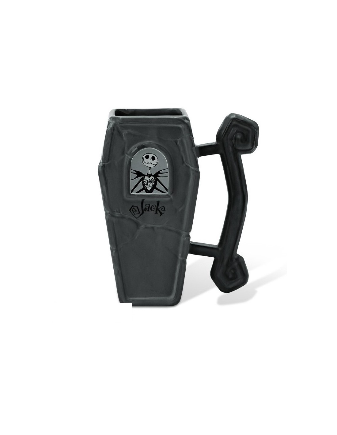 ¡Sumérgete en el oscuro encanto de Halloween y lleva un pedacito del mundo de la Pesadilla Antes de Navidad a tu hogar con esta cautivadora taza de ataúd Jack Skellington!