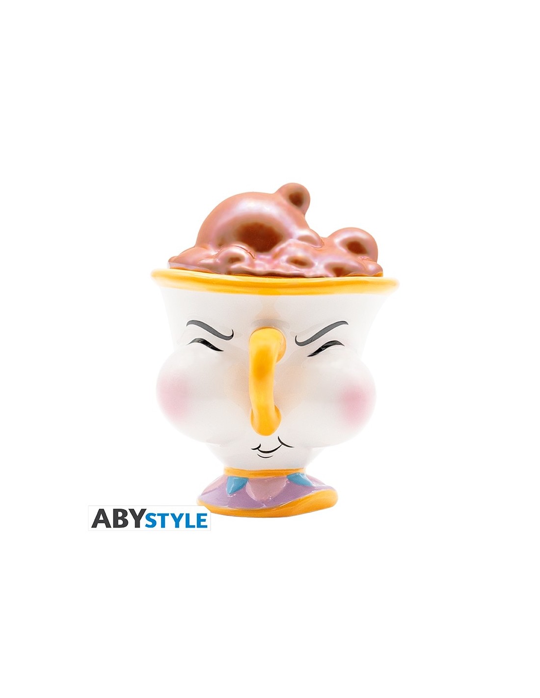 Con una capacidad de 300 ml, esta taza es perfecta para disfrutar de tu bebida favorita mientras revives las aventuras de Bella, Bestia y sus encantadores amigos. Su diseño detallado captura la expresión enfadada y encantadora de Chip, con colores vibrantes y una actitud juguetona.