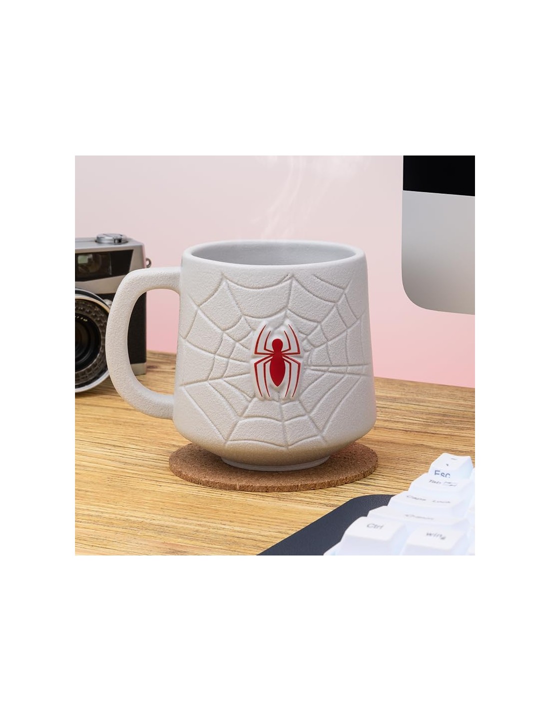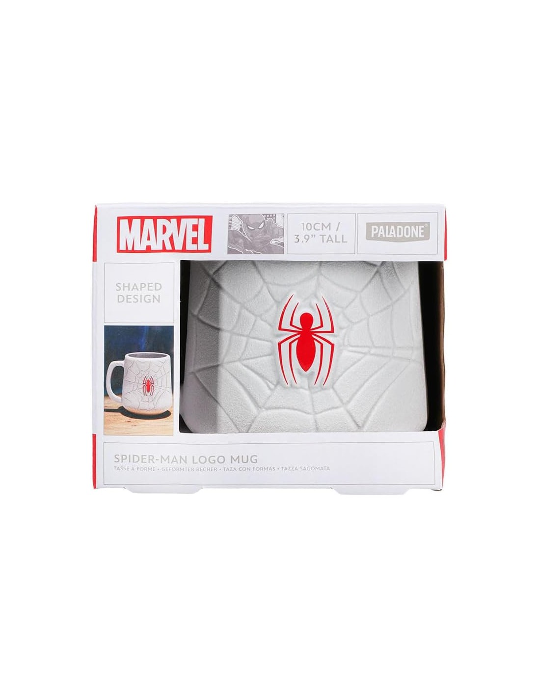El diseño presenta el emblemático logo de Spiderman en un acabado vibrante y detallado, que resalta la esencia del querido superhéroe. Con una altura de 10 cm, esta taza es perfecta para disfrutar de tu bebida favorita, ya sea café, té o chocolate caliente.