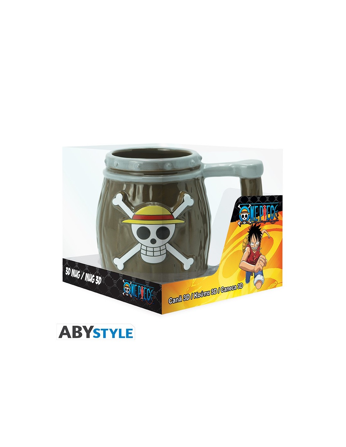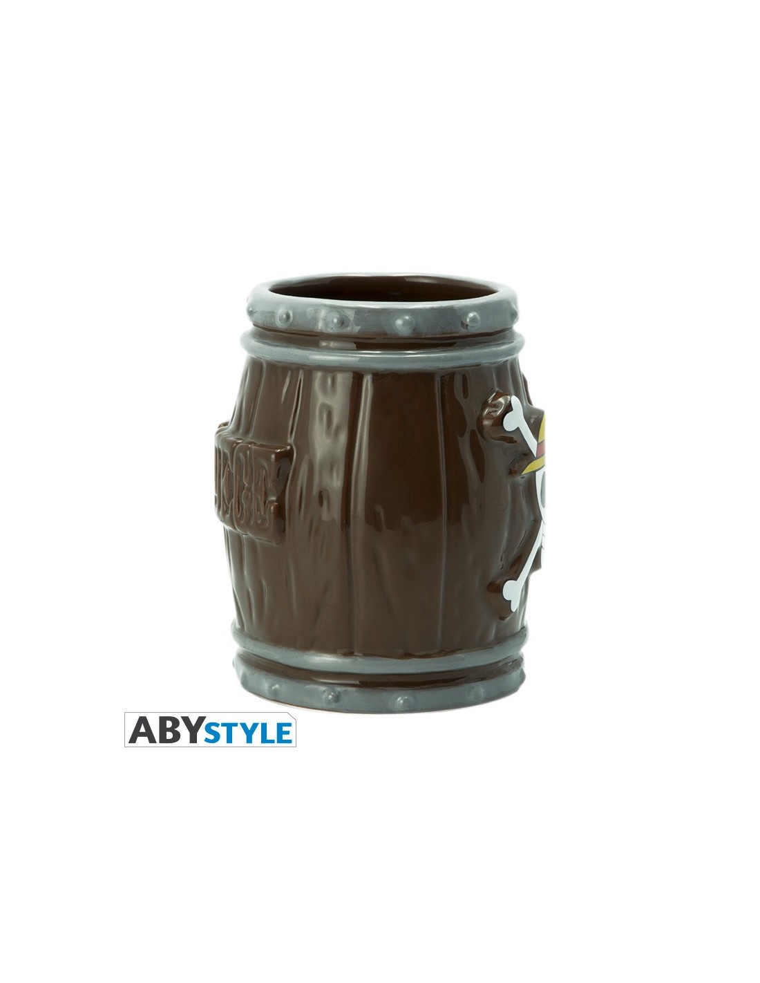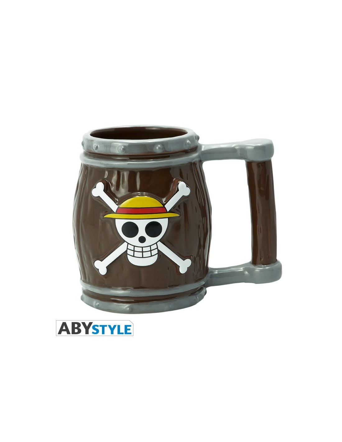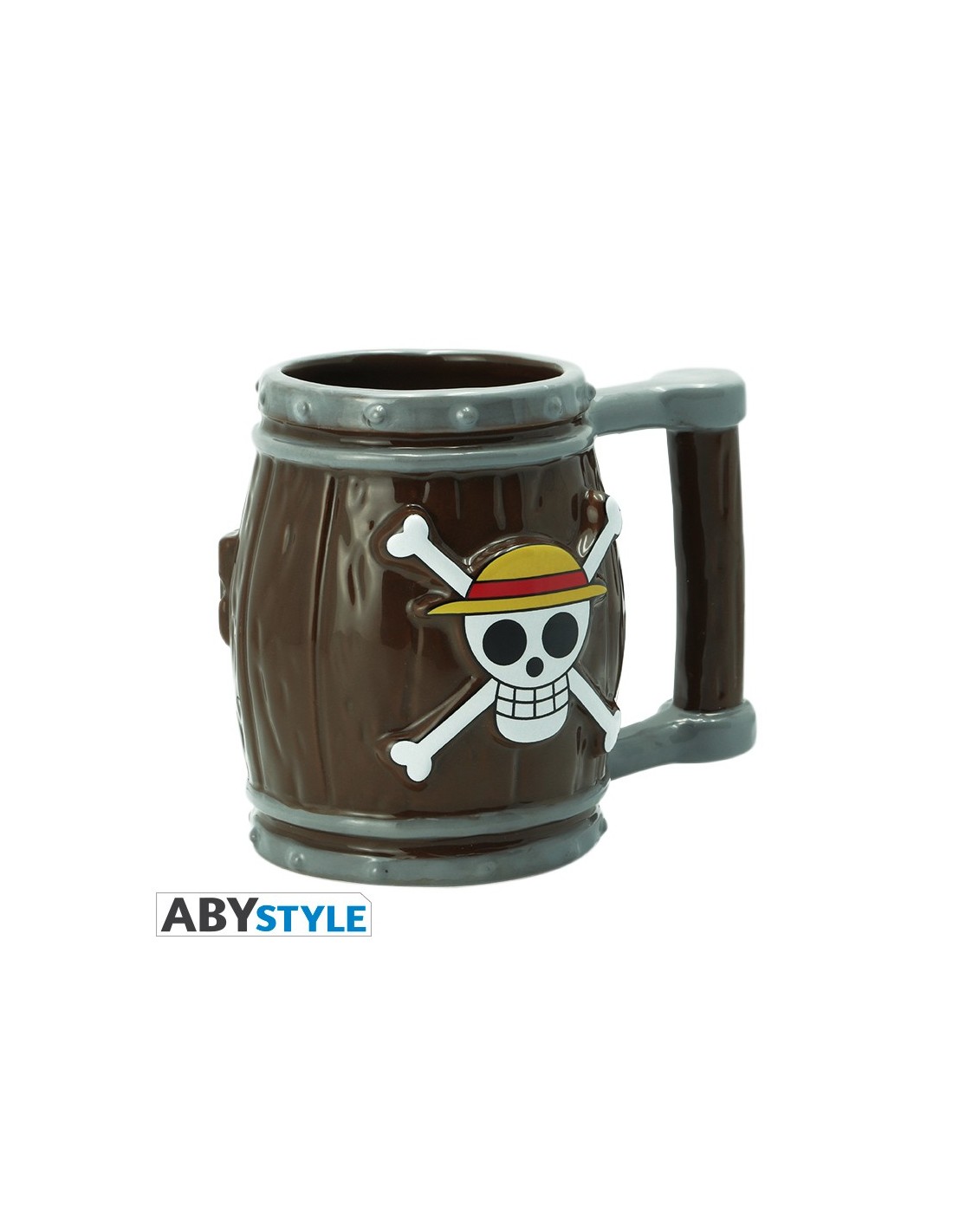 El diseño de la taza se asemeja a un barril, un elemento icónico del universo de One Piece, y presenta la calavera emblemática de los Piratas de Sombrero de Paja. Esta combinación no solo la hace funcional, sino también un artículo decorativo perfecto para cualquier fan de la serie.