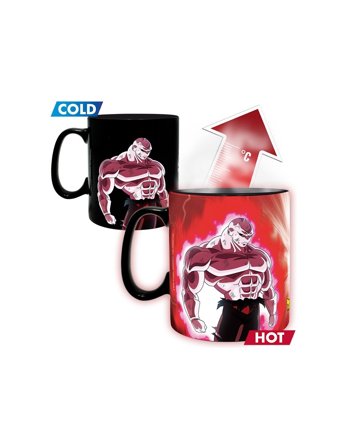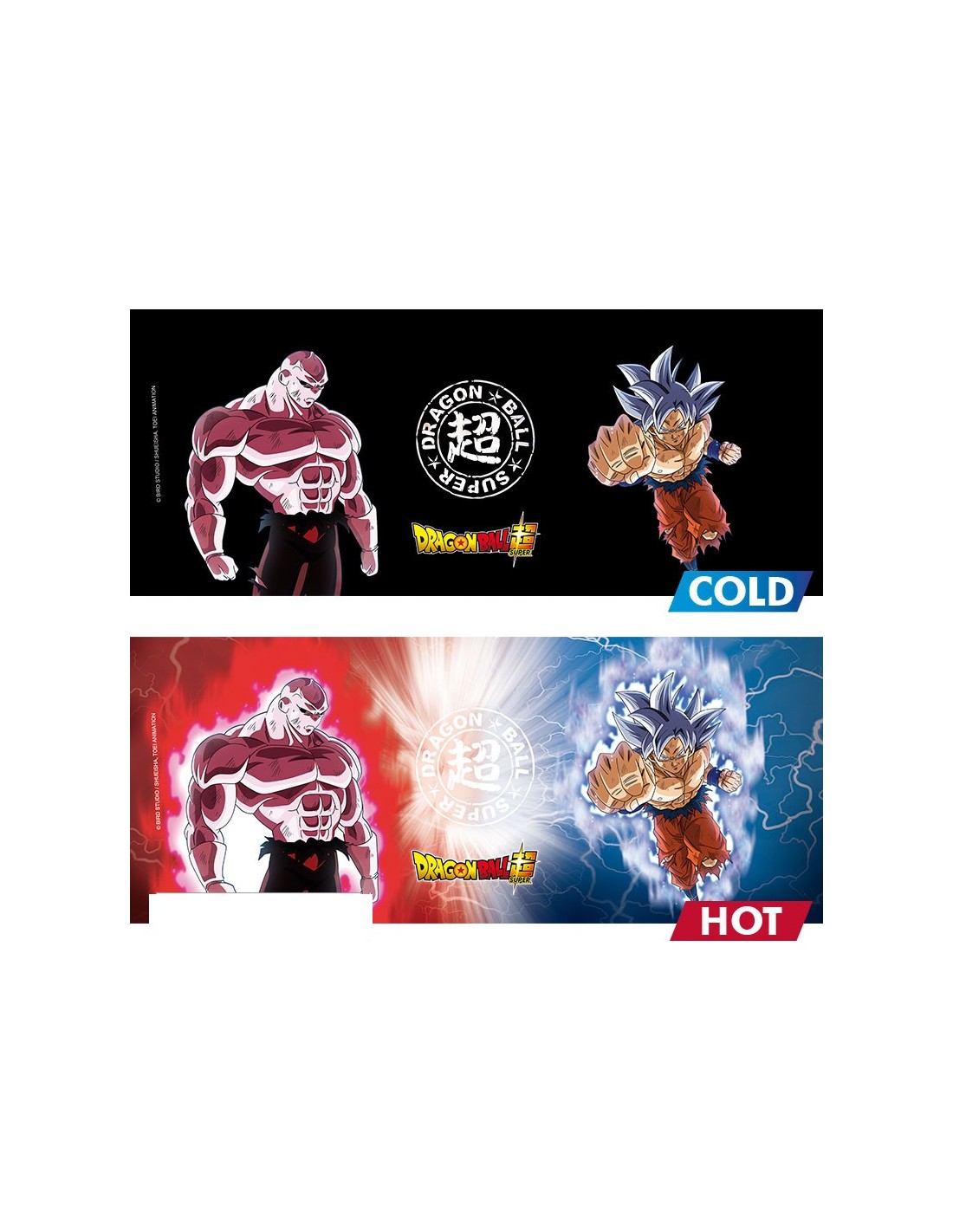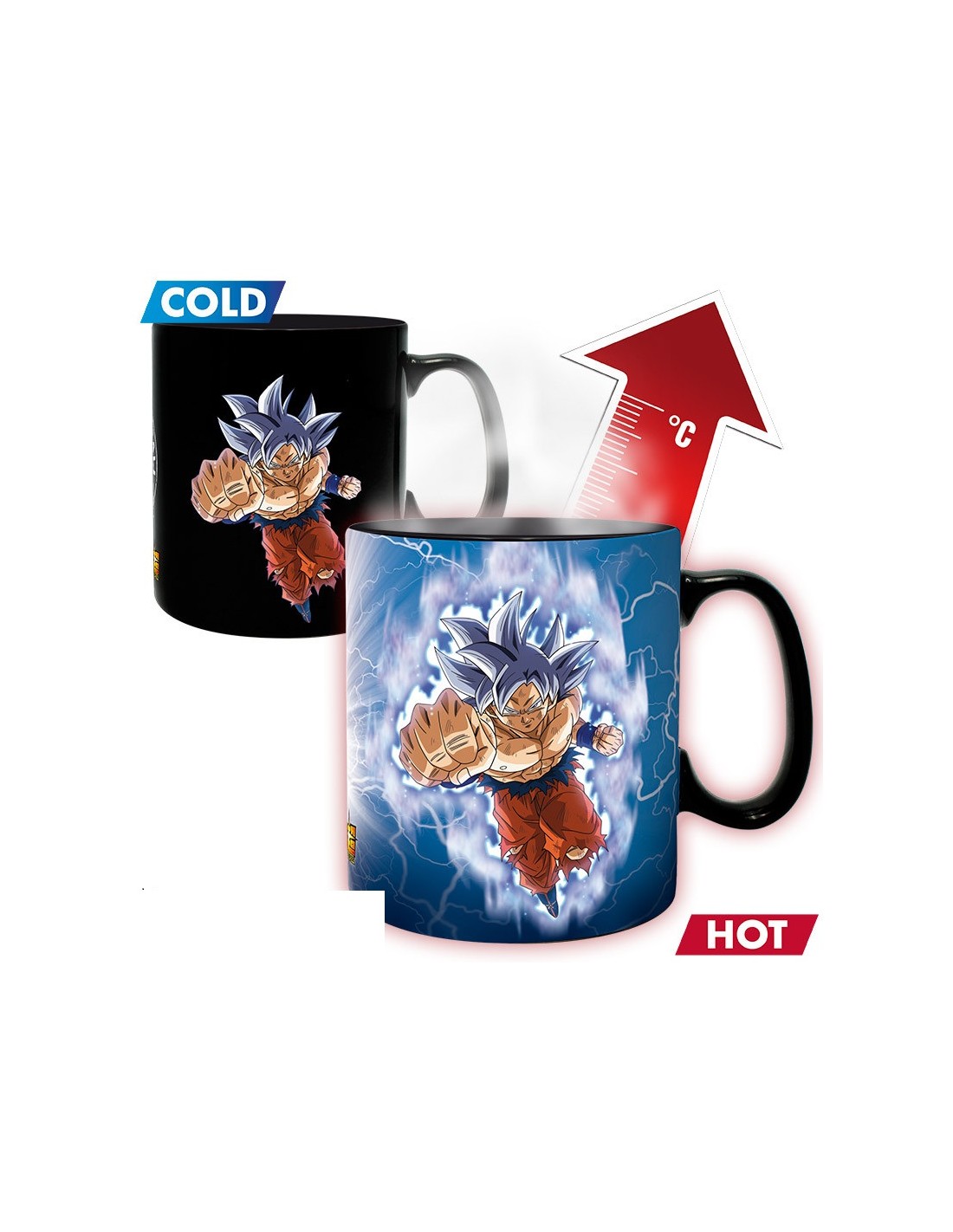Demuestra tu poder saiyajin cada mañana con la taza térmica de Goku Vs Jiren de Abystyle. Inspirada en la legendaria pelea del Torneo del Poder, esta taza de cerámica de 460 ml cambia de diseño con el calor, revelando a Goku en su forma Ultra Instinto rodeado de energía y listo para el combate.