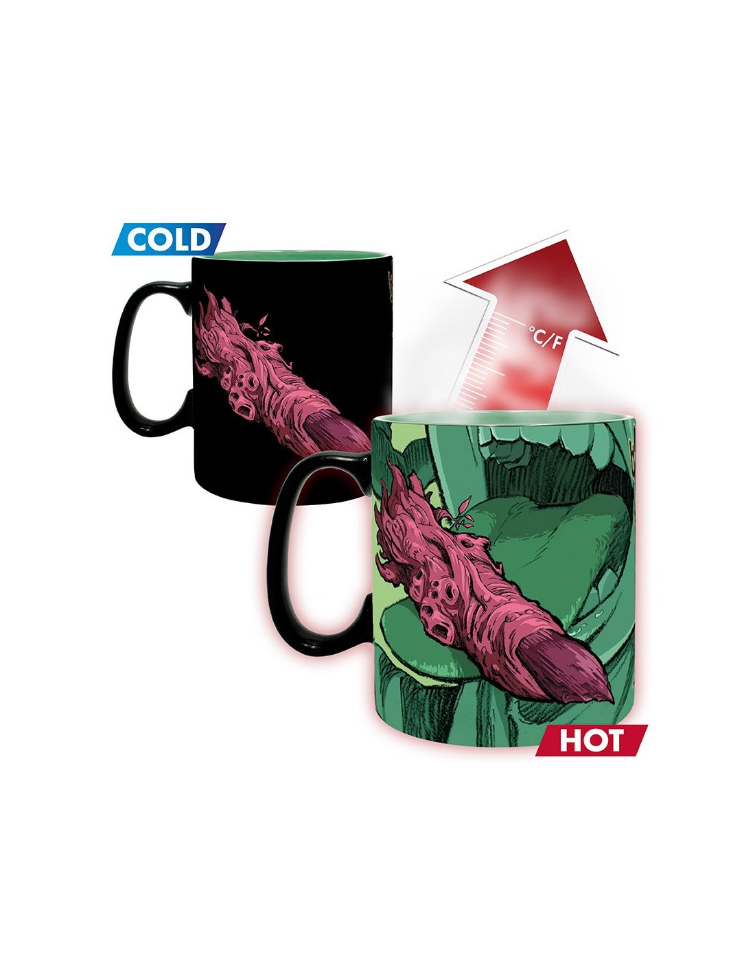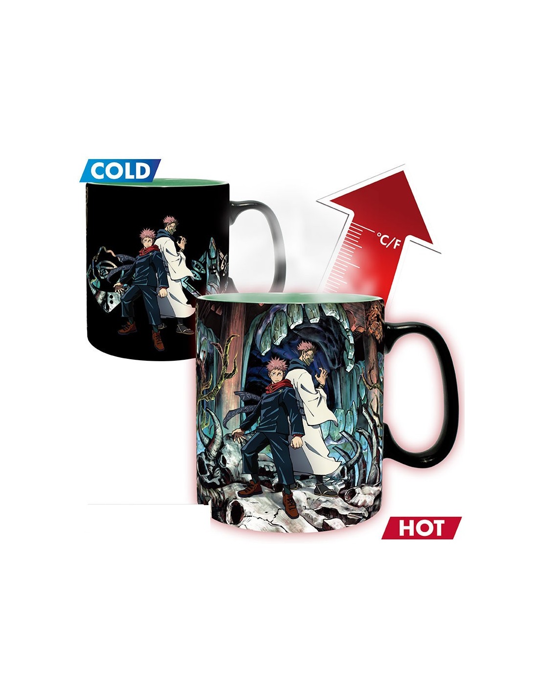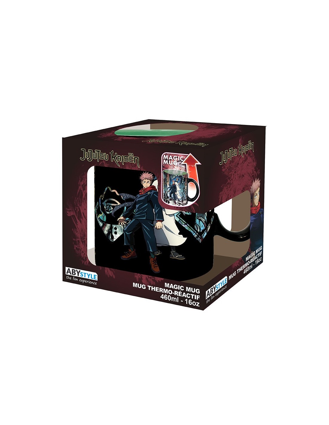 Convierte cada café o té en una experiencia llena de maldiciones con la Taza Térmica de Cerámica Jujutsu Kaisen de Abystyle. Inspirada en el épico enfrentamiento entre Yuji Itadori y Sukuna, esta taza revela un impactante diseño cuando se llena con líquido caliente.