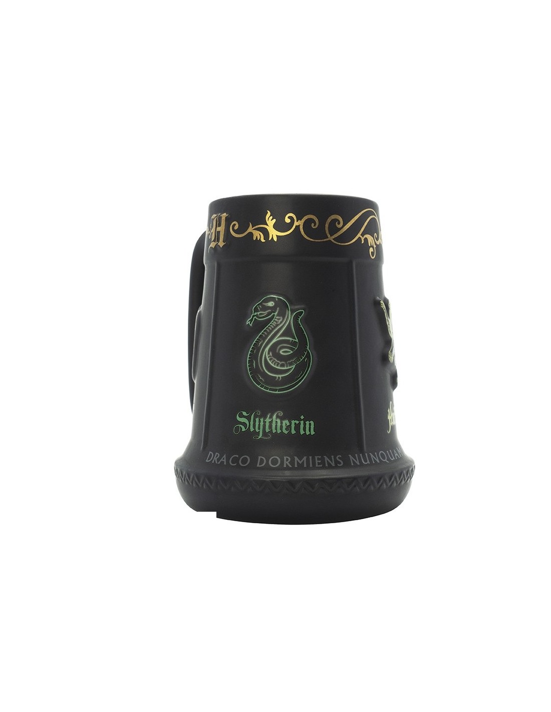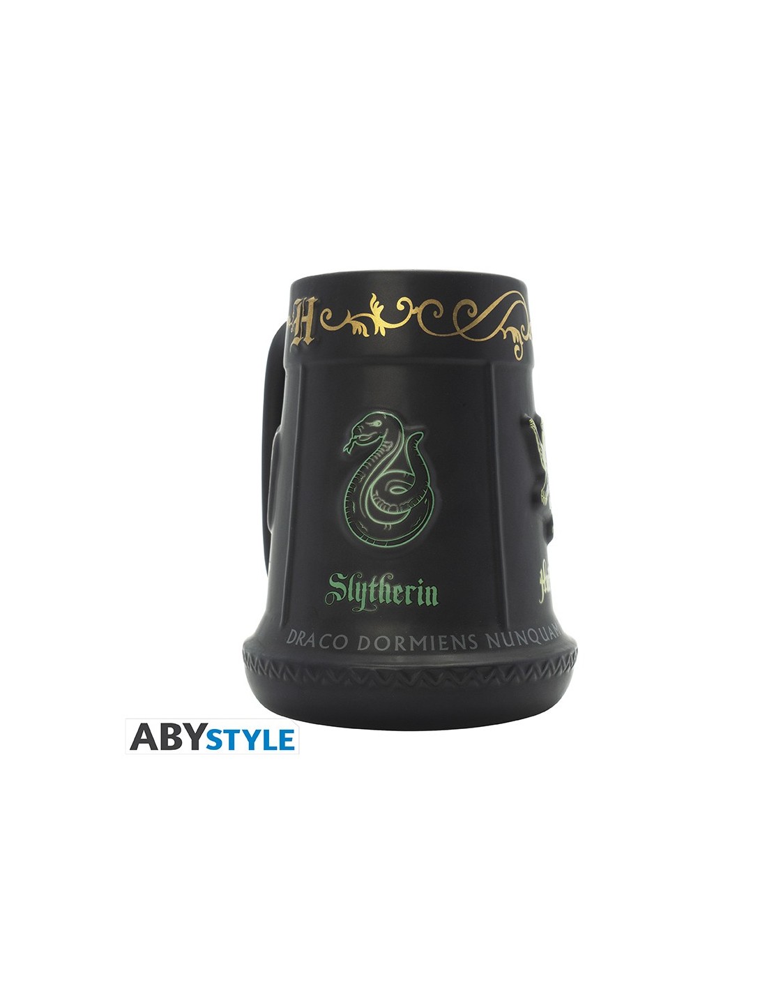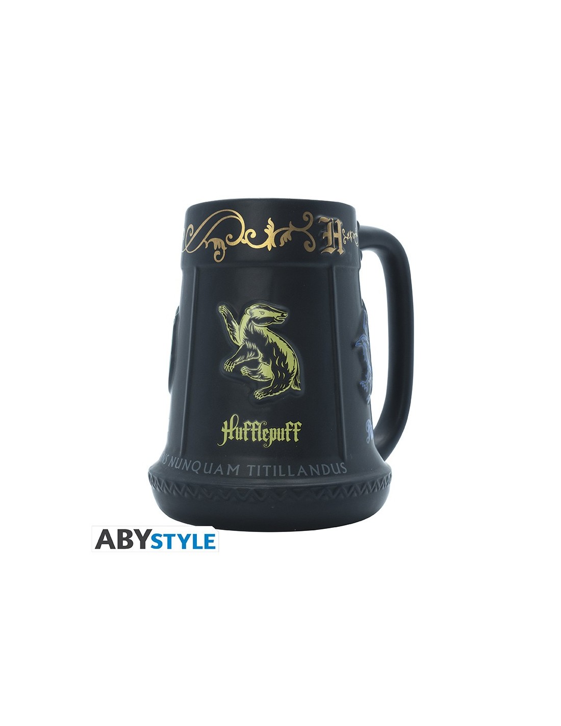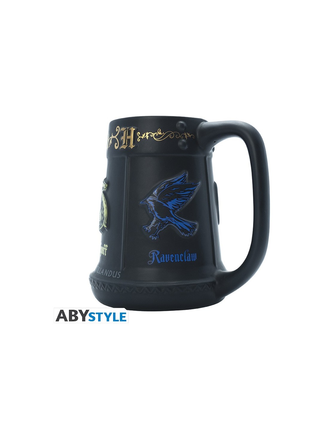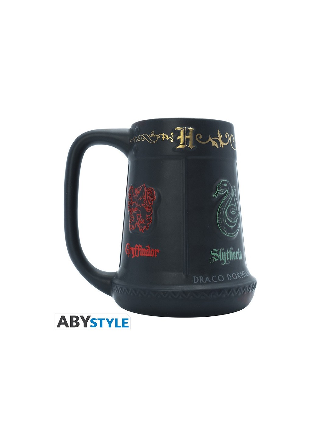 La taza de cerámica 3D Abystyle Harry Potter Las Cuatro Casas rinde homenaje a los emblemas de Gryffindor, Hufflepuff, Ravenclaw y Slytherin en un diseño en relieve que destaca por su acabado detallado y su forma inspirada en el cáliz de una ceremonia mágica. Esta pieza coleccionable no solo es visualmente impactante, sino que también está pensada para el uso diario gracias a su sólida fabricación.