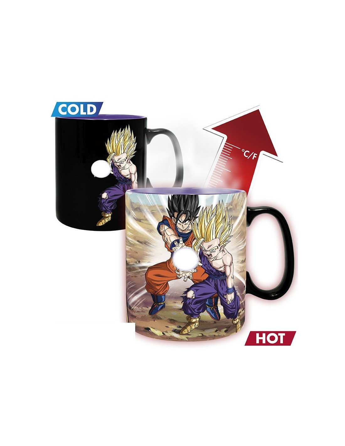 Esta taza térmica de cerámica Abystyle Dragon Ball Modelo Gohan y Célula es un regalo perfecto para cualquier seguidor de la legendaria serie de anime. Fabricada con materiales de alta calidad, cuenta con una capacidad de 460 ml y un diseño que cambia mágicamente al contacto con el calor. En frío, la taza muestra una imagen oscura con siluetas; al llenarla con una bebida caliente, revela una épica escena del enfrentamiento entre Gohan y Célula, uno de los momentos más icónicos de la saga.