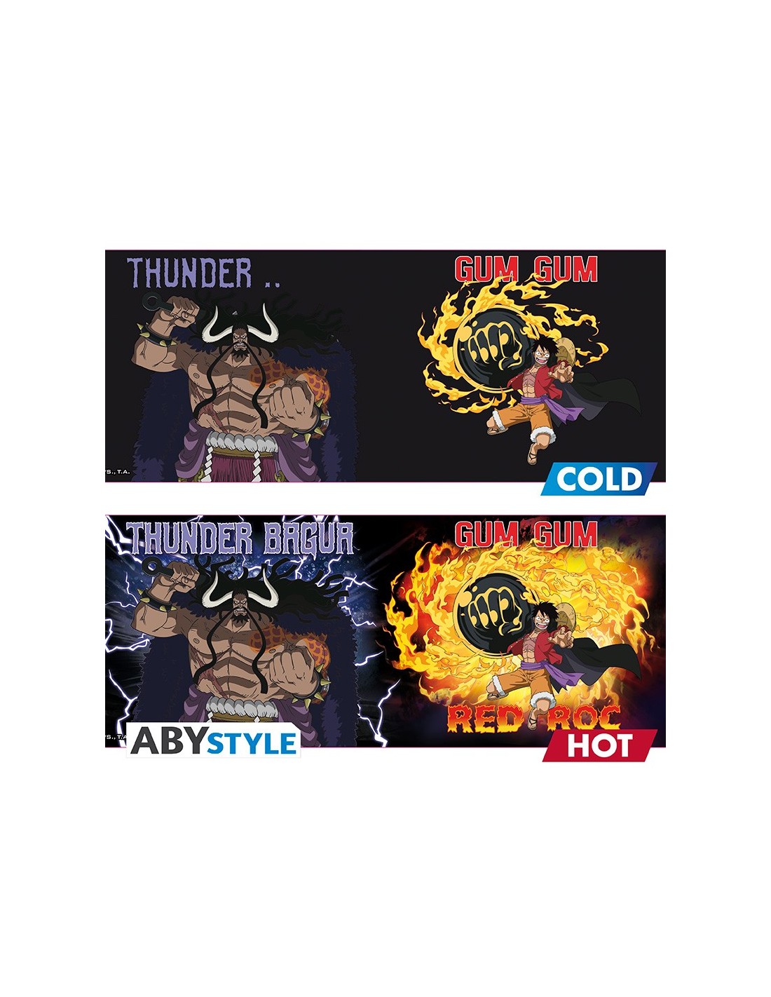 La Taza Térmica de Cerámica Abystyle One Piece Modelo Luffy vs Kaidou es una pieza imprescindible para cualquier fan del universo de Eiichiro Oda. Con una capacidad de 460 ml, esta taza transforma el momento del café o té en una escena de acción directa desde Wano.
