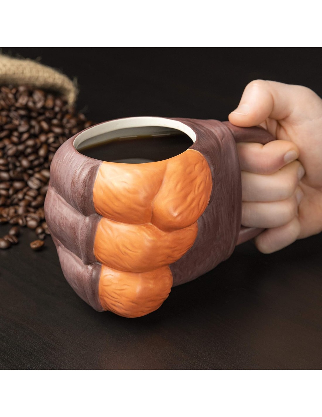Con acabados detallados que imitan la forma de una mano estilizada, en colores anaranjados y marrones que remiten al pelaje y guantes de Crash, esta taza no es solo funcional, sino también una pieza decorativa imprescindible para cualquier gamer o coleccionista. Su diseño robusto y su capacidad generosa la hacen ideal para café, té, chocolate caliente o lo que prefieras, mientras agregas un toque retro y divertido a tu día.