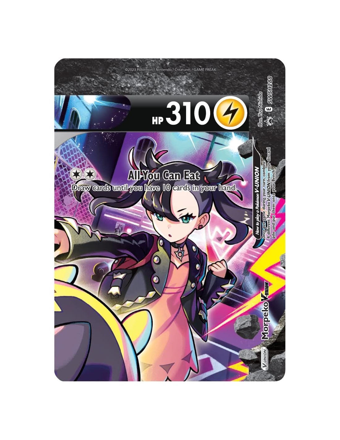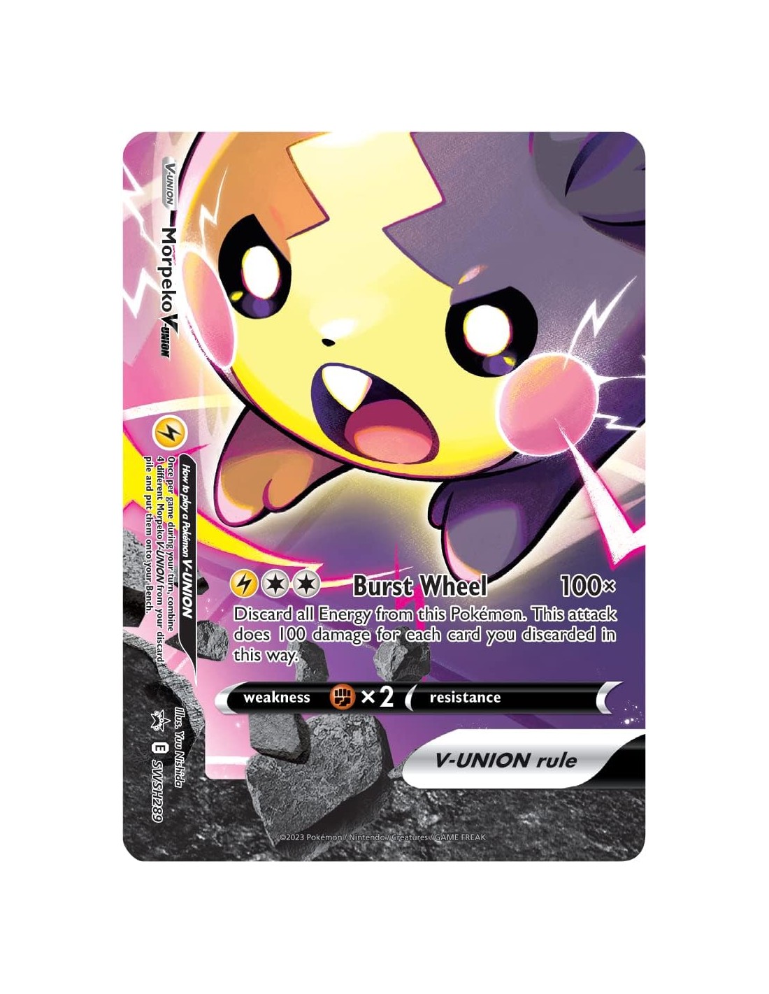 Con estas cartas V-Union, los jugadores pueden experimentar batallas intensas y estratégicas mientras aprovechan los poderosos ataques y habilidades de Morpeko. Despliega tu estrategia, construye tu mazo con cartas de apoyo y sorprende a tus oponentes con la fuerza combinada de Morpeko V-Union.