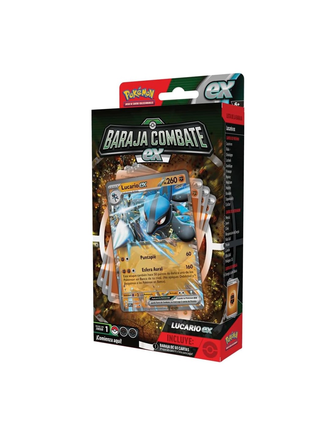 La Baraja de Combate Lucario es un mazo temático preconstruido del Pokémon TCG, diseñado para jugadores que buscan una entrada rápida y competitiva al juego. Centrada en Lucario, el icónico Pokémon de tipo Lucha y Acero, esta baraja aprovecha su velocidad, poder ofensivo y sinergia con energías especiales para golpear fuerte desde el principio.