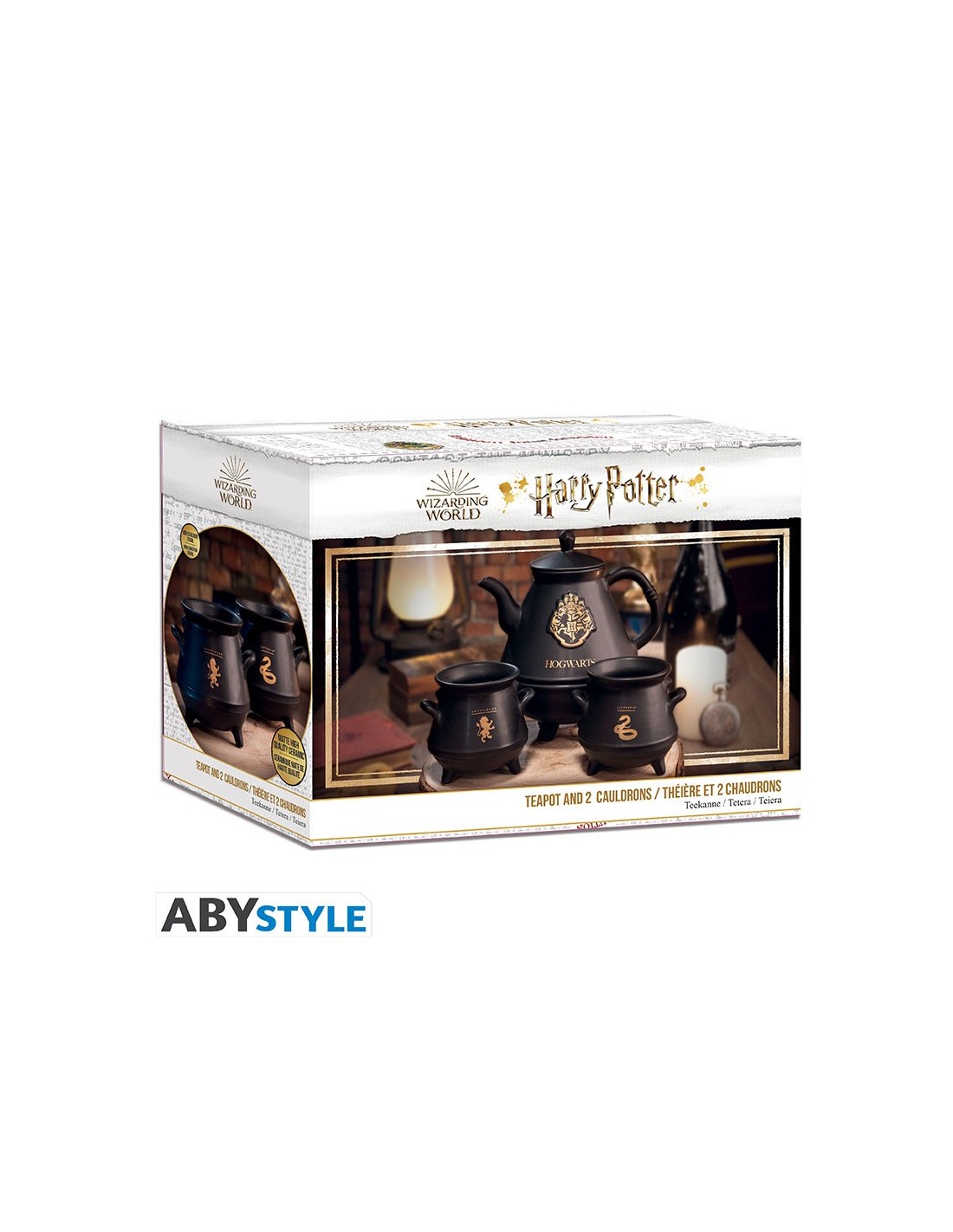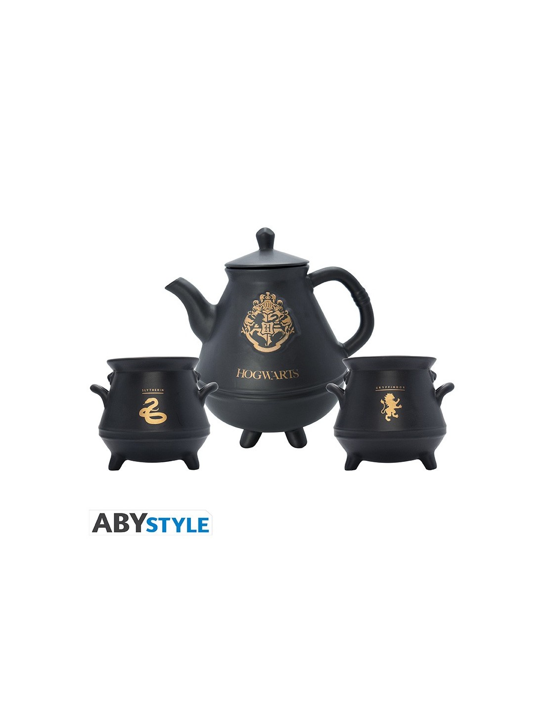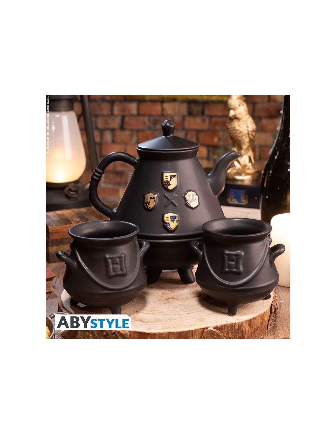 La tetera de cerámica Harry Potter modelo Calderos es el complemento perfecto para los amantes del mundo mágico de Hogwarts. Con un diseño que evoca la esencia de los calderos utilizados en la clase de Pociones, esta tetera y sus tazas añaden un toque de magia y misterio a tus momentos de té.