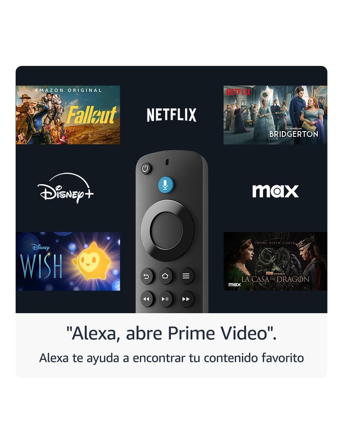 Este dispositivo permite el acceso a una amplia selección de plataformas de streaming como Prime Video, Netflix, Disney+, YouTube y más. Su mando con voz Alexa facilita la navegación sin necesidad de escribir, permitiendo controlar la reproducción, buscar contenido y administrar dispositivos inteligentes con comandos de voz.