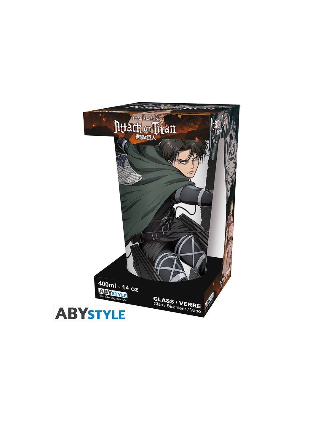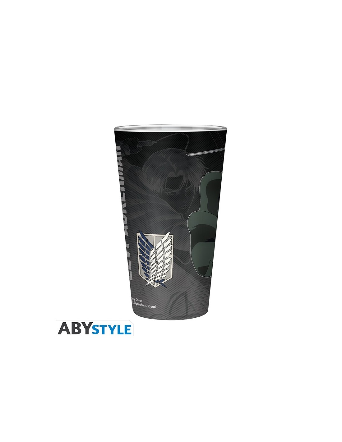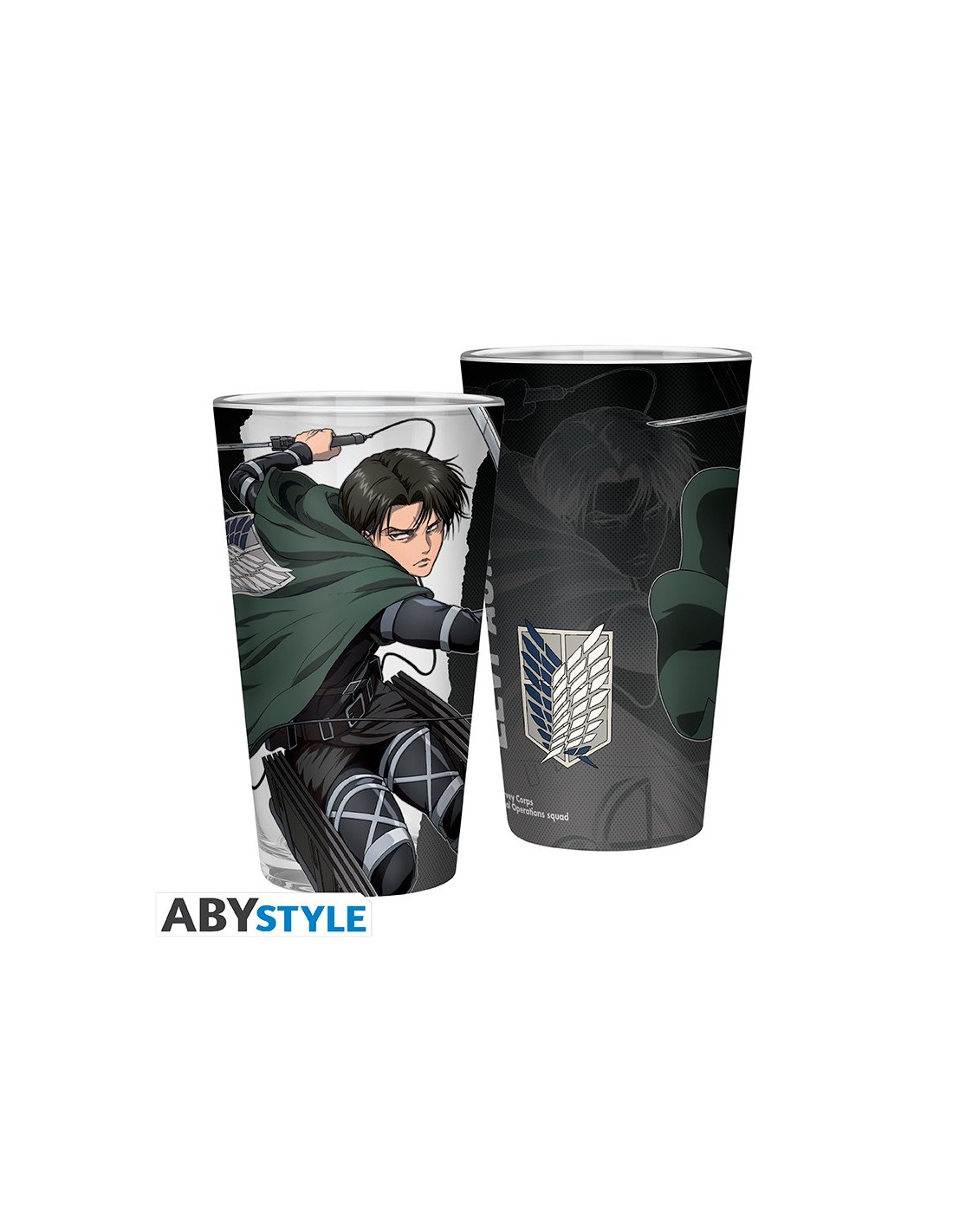El vaso de gran formato (XXL) de 46cl (aproximadamente 15.5 oz) de Abystyle es un recipiente ideal para bebidas frías, que celebra al personaje más popular y respetado de Attack on Titan: el Capitán Levi Ackerman.