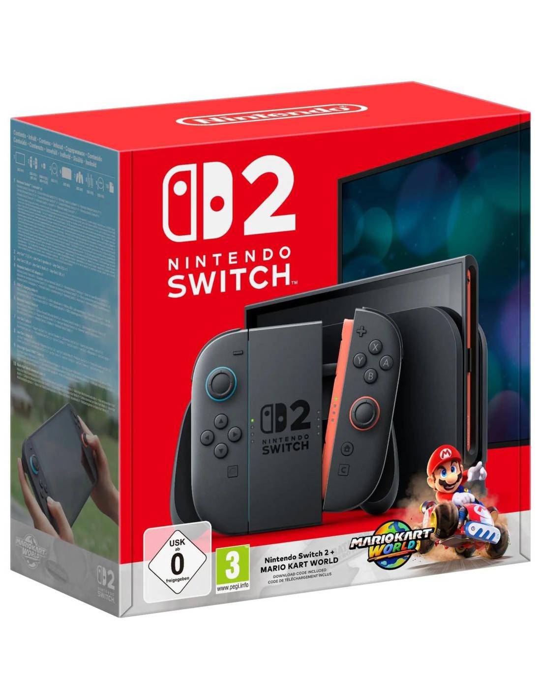 El pack incluye Mario Kart World en formato digital, una nueva entrega de la legendaria franquicia de carreras, diseñada para sacar el máximo partido a la consola. El juego amplía la experiencia clásica con circuitos innovadores, personajes emblemáticos del universo Nintendo y modos multijugador pensados para disfrutar tanto en local como en línea, manteniendo la esencia accesible y competitiva que ha hecho famosa a la saga.