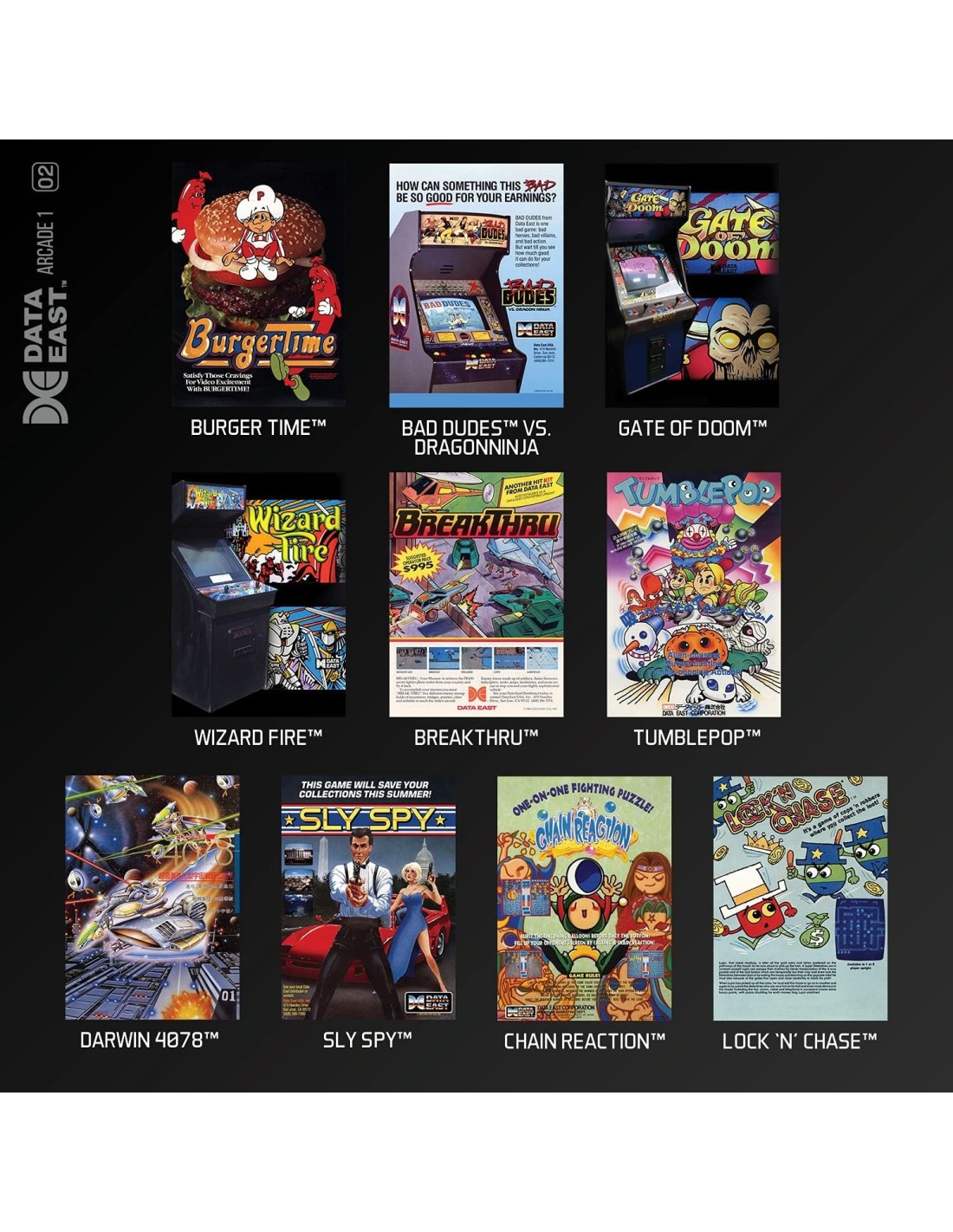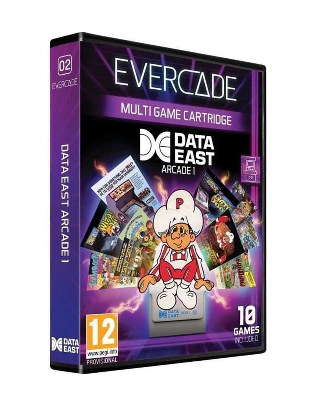 Cartucho Data East Arcade 1 para Evercade, con una colección de juegos clásicos de arcade que permiten revivir la emoción de los salones recreativos en tu consola portátil.