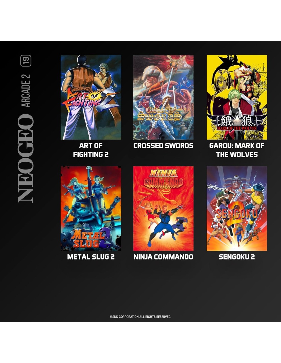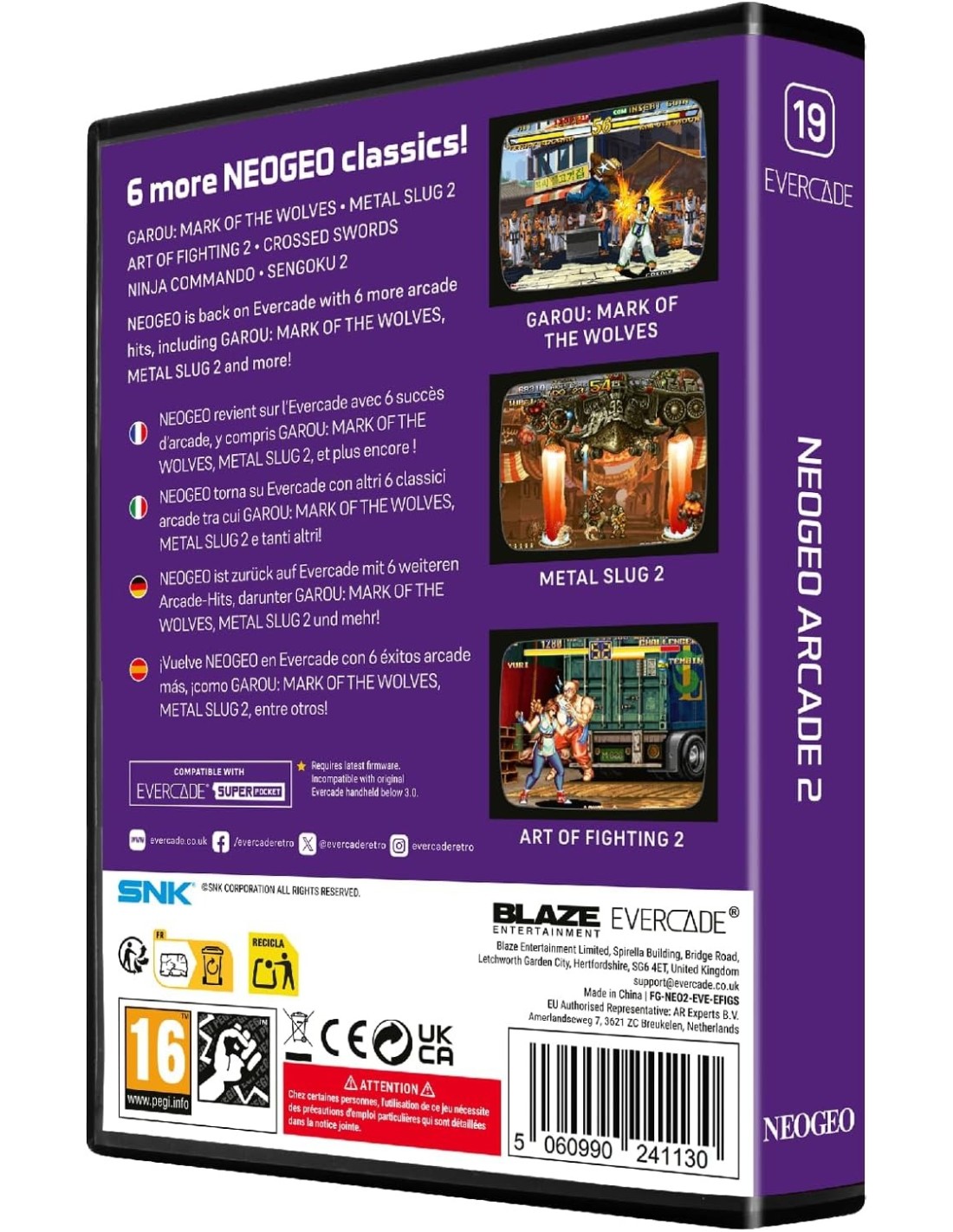 El Cartucho con Juegos NeoGeo Arcade 2 para Videoconsola Evercade ofrece una selección cuidada de clásicos de la legendaria placa arcade MVS de SNK, permitiendo disfrutar en formato físico de algunas de las obras más representativas del catálogo NEOGEO. Cada juego mantiene su jugabilidad original, con controles optimizados para Evercade y funciones modernas como guardado rápido, lo que permite partidas más cómodas y accesibles sin perder la esencia arcade.