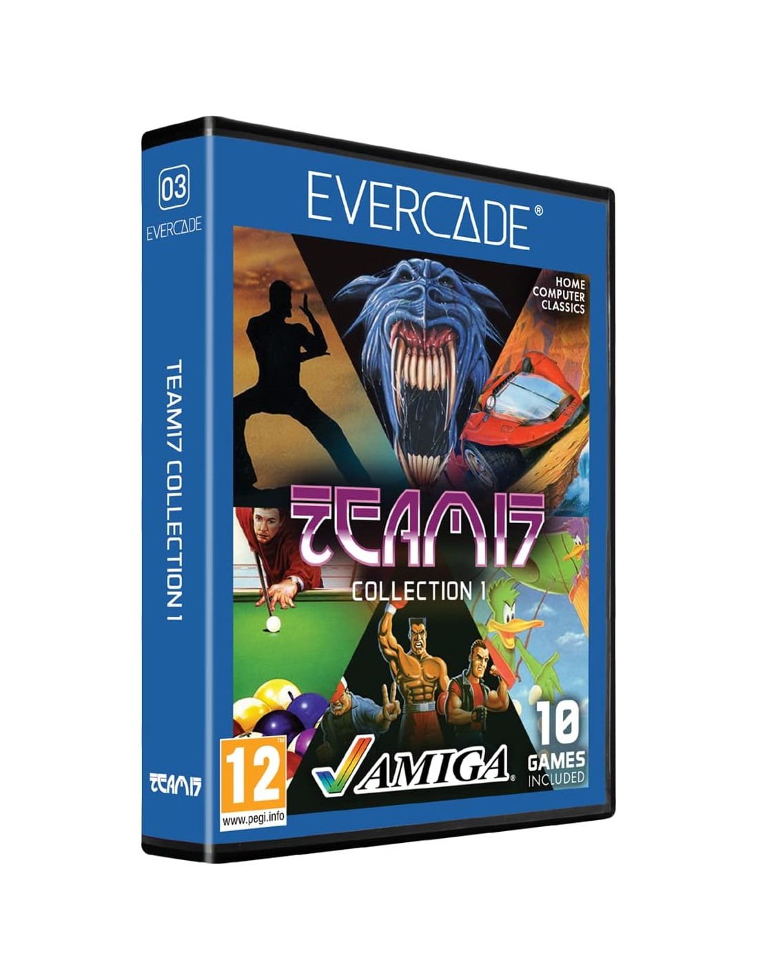 El cartucho Team17 Amiga Collection 1 para la videoconsola Evercade ofrece una selección imprescindible de 10 títulos que definieron la experiencia de juego en ordenadores Amiga durante los años 90. Esta colección destaca algunos de los lanzamientos más aclamados de Team17, con una variedad de géneros que incluye acción, plataformas, deportes y estrategia. Entre los juegos destacados se encuentran Alien Breed, Alien Breed: Tower Assault, Body Blows, Project-X, Qwak, Full Contact, Kingpin: Arcade Sports Bowling, Arcade Pool, ATR: All Terrain Racing y Worms: The Director's Cut. Adaptados cuidadosamente para funcionar tanto en las consolas Evercade portátiles como de sobremesa, estos juegos conservan sus gráficos detallados y jugabilidad desafiante, optimizados para los controles modernos. Además, el cartucho incluye un manual físico con información, arte e historia de cada título, convirtiéndolo en una pieza de colección esencial para los entusiastas del retro gaming y fans de la era Amiga.