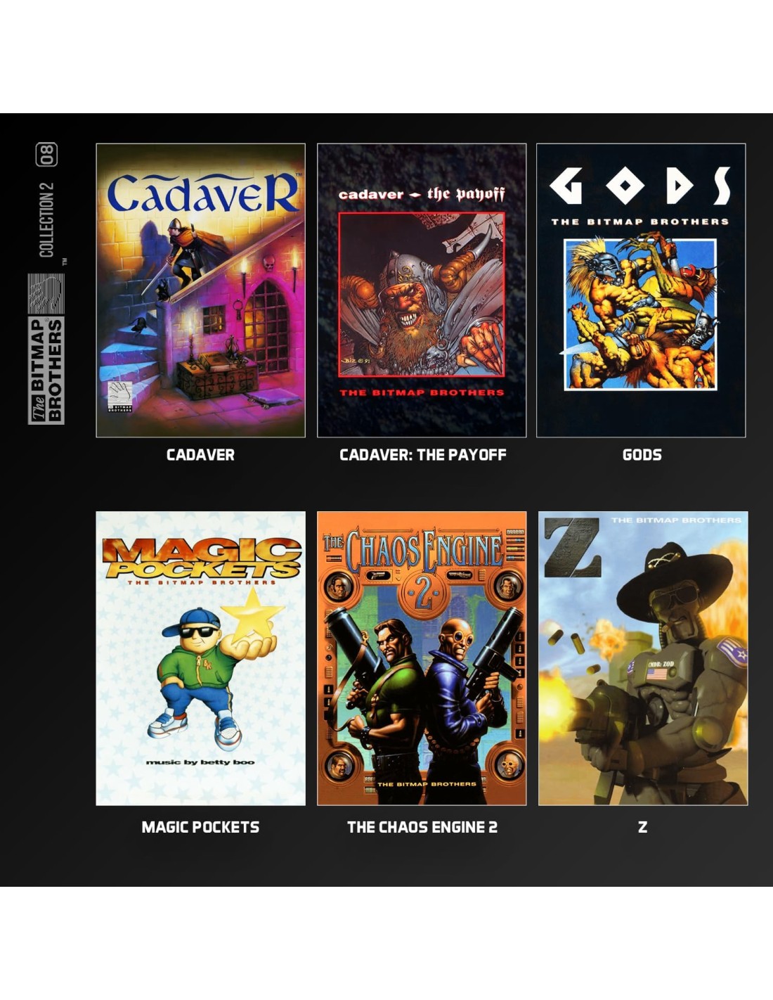 Esta segunda colección reúne títulos emblemáticos que mezclan acción táctica, estrategia en tiempo real y plataformas futuristas con una banda sonora inolvidable y un estilo gráfico inmediatamente reconocible. En esta entrega podrás encontrar joyas como The Chaos Engine 2, secuela del aclamado run & gun steampunk, y Speedball 2: Brutal Deluxe, el legendario deporte cibernético de ritmo frenético.