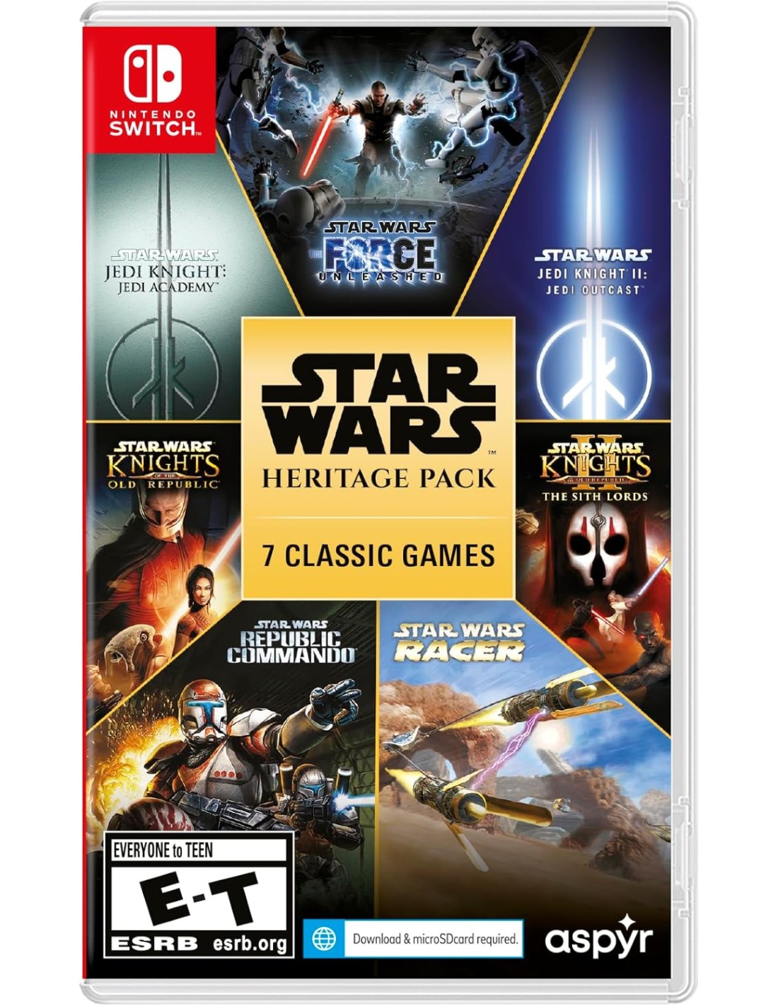 Explora el vasto universo de STAR WARS™ con el Pack de Legado, una colección que reúne siete de los juegos más emblemáticos de la saga. Domina la Fuerza con Luke Skywalker en Jedi Knight II: Jedi Outcast y perfecciona tu entrenamiento en Jedi Academy. Siente la adrenalina de las carreras en Episode I Racer y lidera a un escuadrón de élite en Republic Commando™.