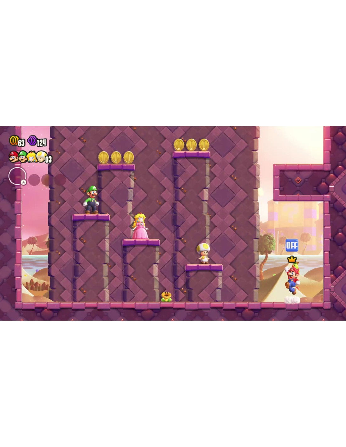 Revive la clásica jugabilidad de desplazamiento lateral de Mario con un giro innovador: ¡las Flores Maravilla! Estos objetos desencadenan momentos espectaculares, desde tuberías animadas hasta convertirte en una gigantesca bola de pinchos. Prepárate para sorpresas inesperadas.