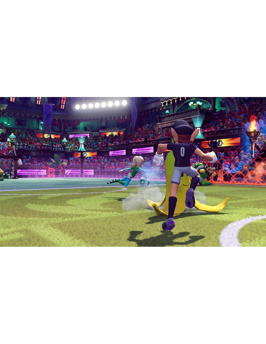 Remata el balón para conseguir marcar goles, haciendo tiros especiales. Coge el balón y llévalo por el campo para hacer un hipertrallazo, un tiro especial con el que podrás marcar dos goles a la vez.
