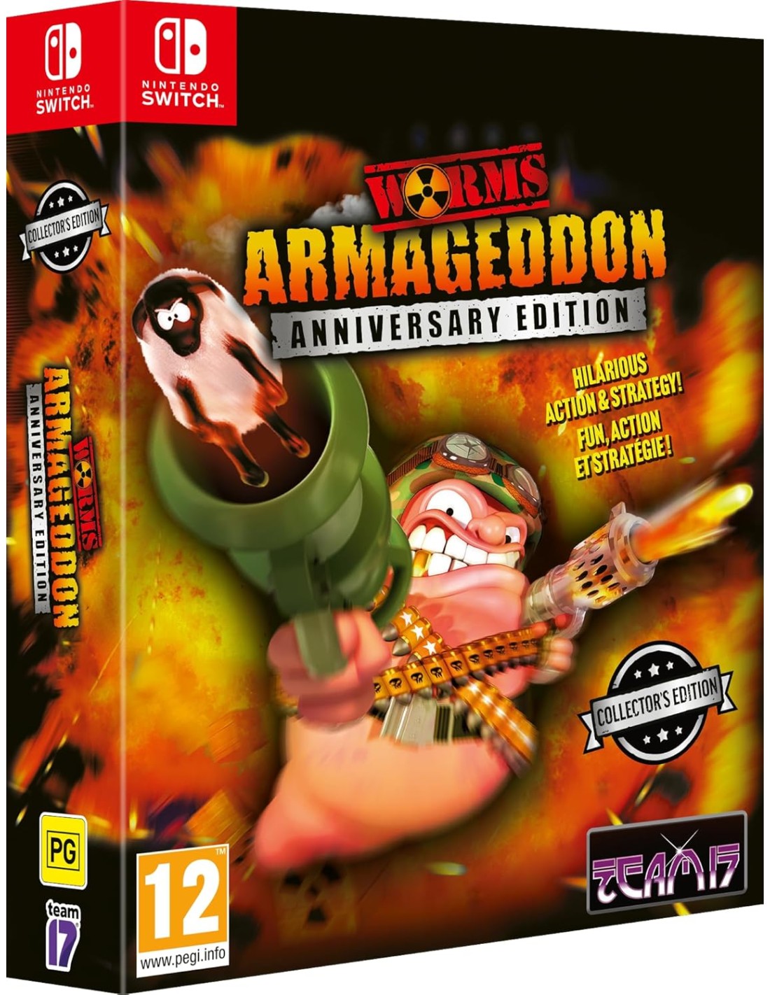 Worms Armageddon Anniversary Edition para Nintendo Switch revive el clásico de estrategia por turnos con una experiencia optimizada para consolas modernas. Controla tu escuadrón de gusanos en campos de batalla completamente destructibles, usando una alocada variedad de armas —desde ovejas explosivas hasta ataques de banana— para eliminar al equipo rival con precisión... y mucho caos.