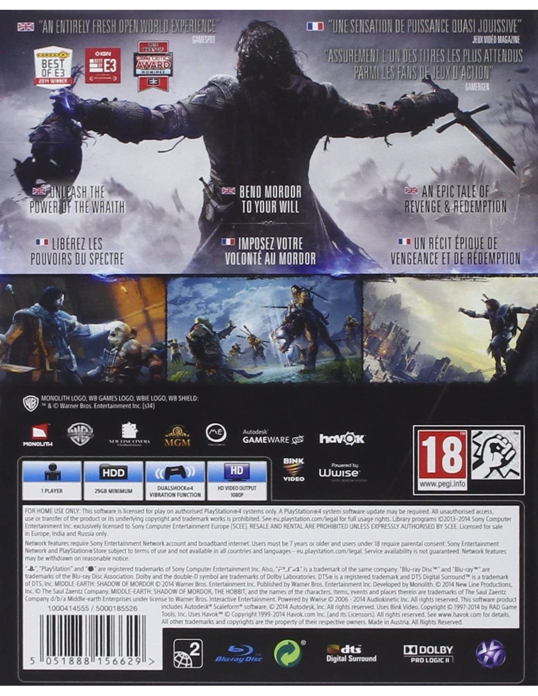 La Tierra Media: Sombras de Mordor ofrece un entorno de juego dinámico donde el jugador deberá orquestar su propio plan de venganza. El juegocomienza en la noche en la que Sauron regresa a Mordor, cuando sus Capitanes Negros ejecutan brutalmente a los Exploradores de la Puerta Negra. Los jugadores asumirán el papel de Talion, un valiente explorador cuya familia es asesinada esa misma noche y que volverá a la vida gracias al espíritu de venganza para destruir a los que le arrebataron todo lo que quería. Durante el transcurso de la venganza personal de Talion, el jugador descubrirá la verdad del Espíritu que le impulsa, aprenderá sobre los orígenes de los Anillos de Poder y, finalmente, se enfrentará a su último enemigo.