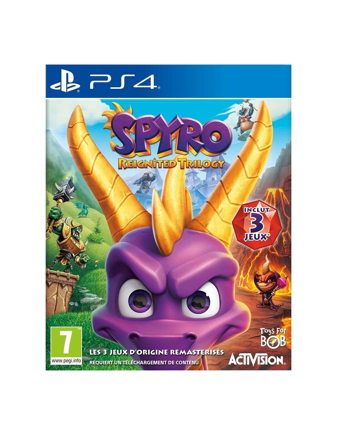¡El auténtico maestro del asado ha vuelto! Spyro™ vuelve en mejor forma que nunca en la colección Spyro™ Reignited Trilogy, con el mismo aliento de fuego devastador y la misma actitud candente de siempre, pero ahora en una asombrosa alta definición. Siente la emoción ardiente de los tres juegos originales, Spyro™ the Dragon, Spyro™ 2: Ripto's Rage! y Spyro™: Year of the Dragon. Explora reinos inmensos, reencuéntrate con personalidades únicas y revive la aventura completamente remasterizada. Porque cuando hay un reino en apuros, solo hay un dragón con quien puedes contar.