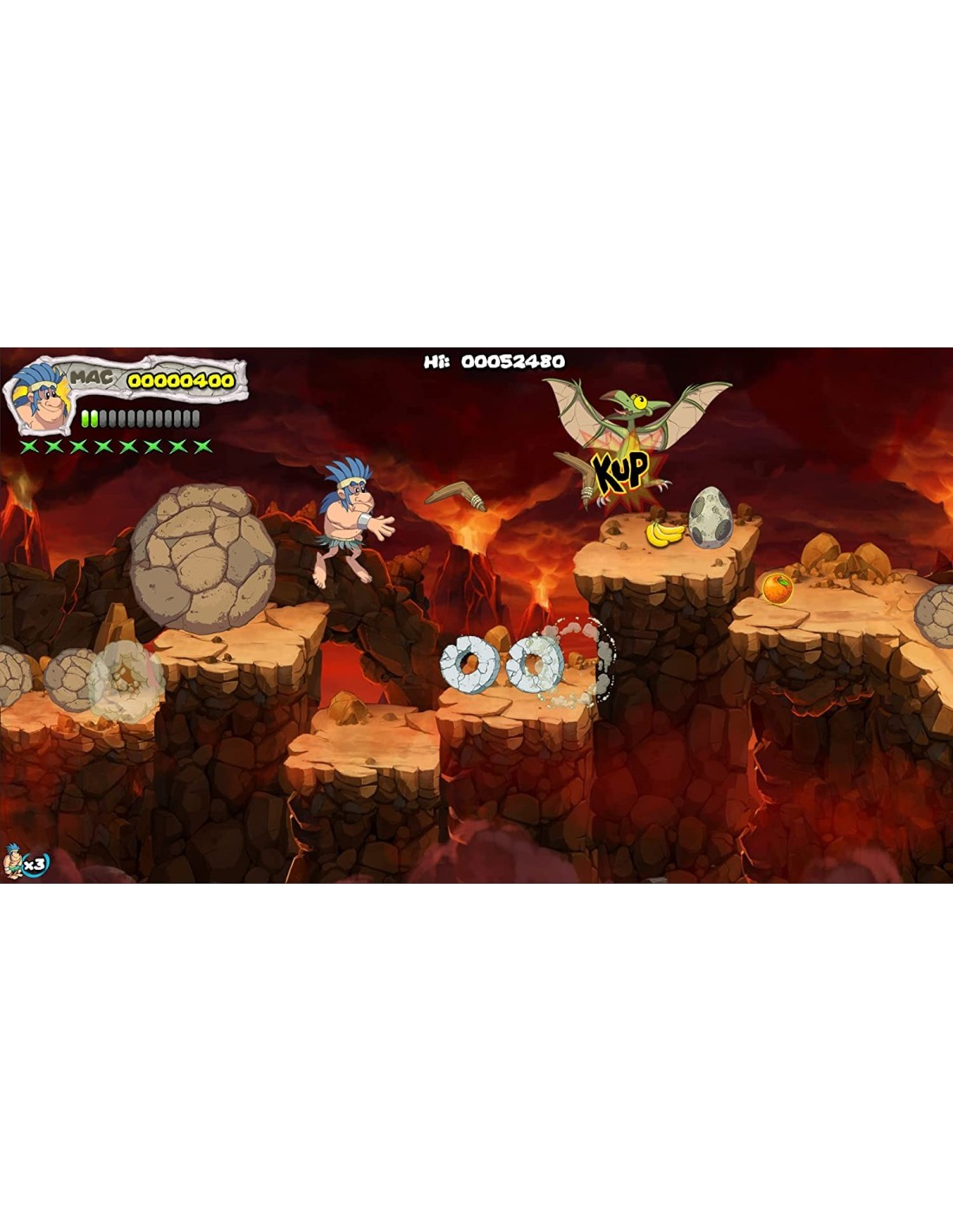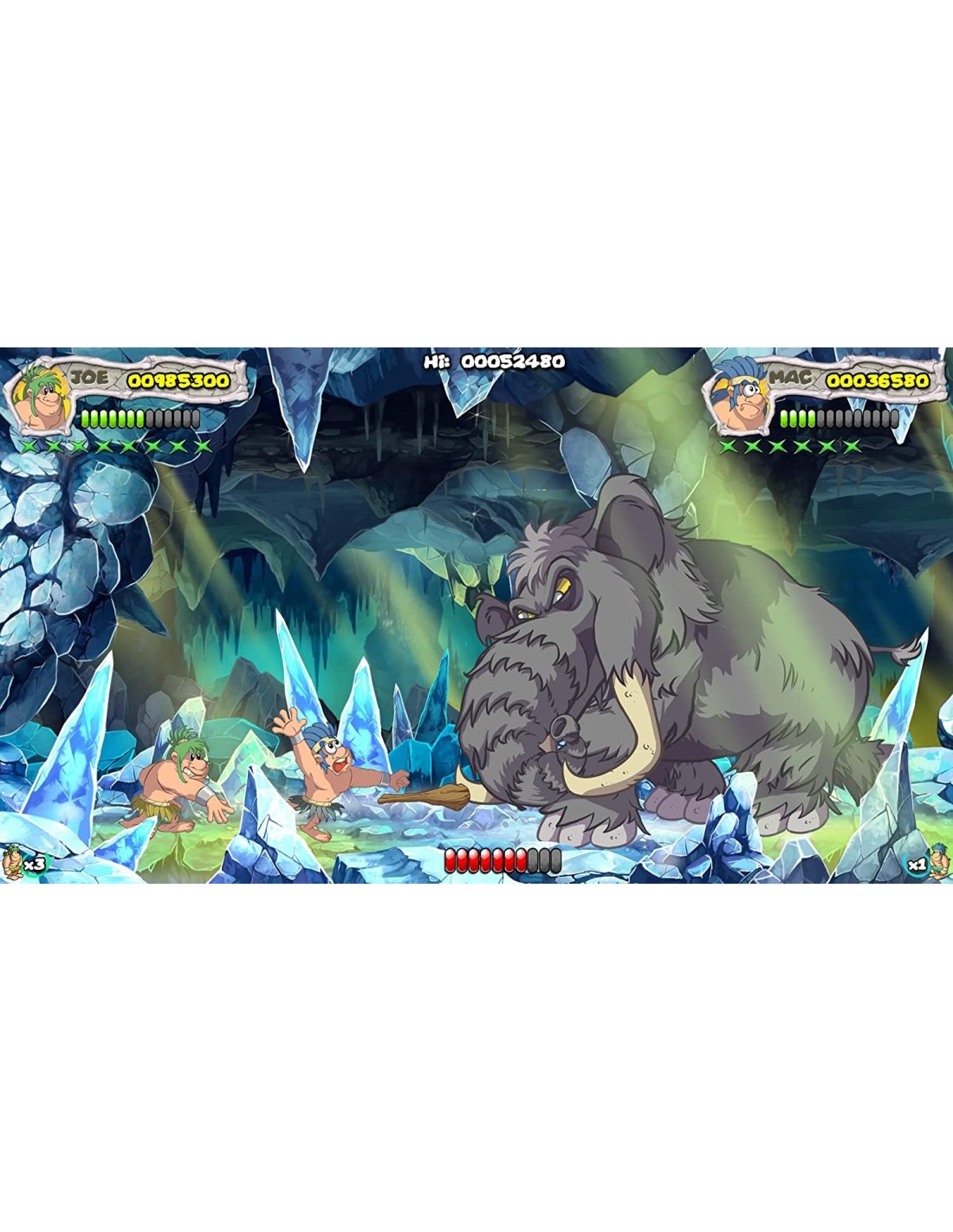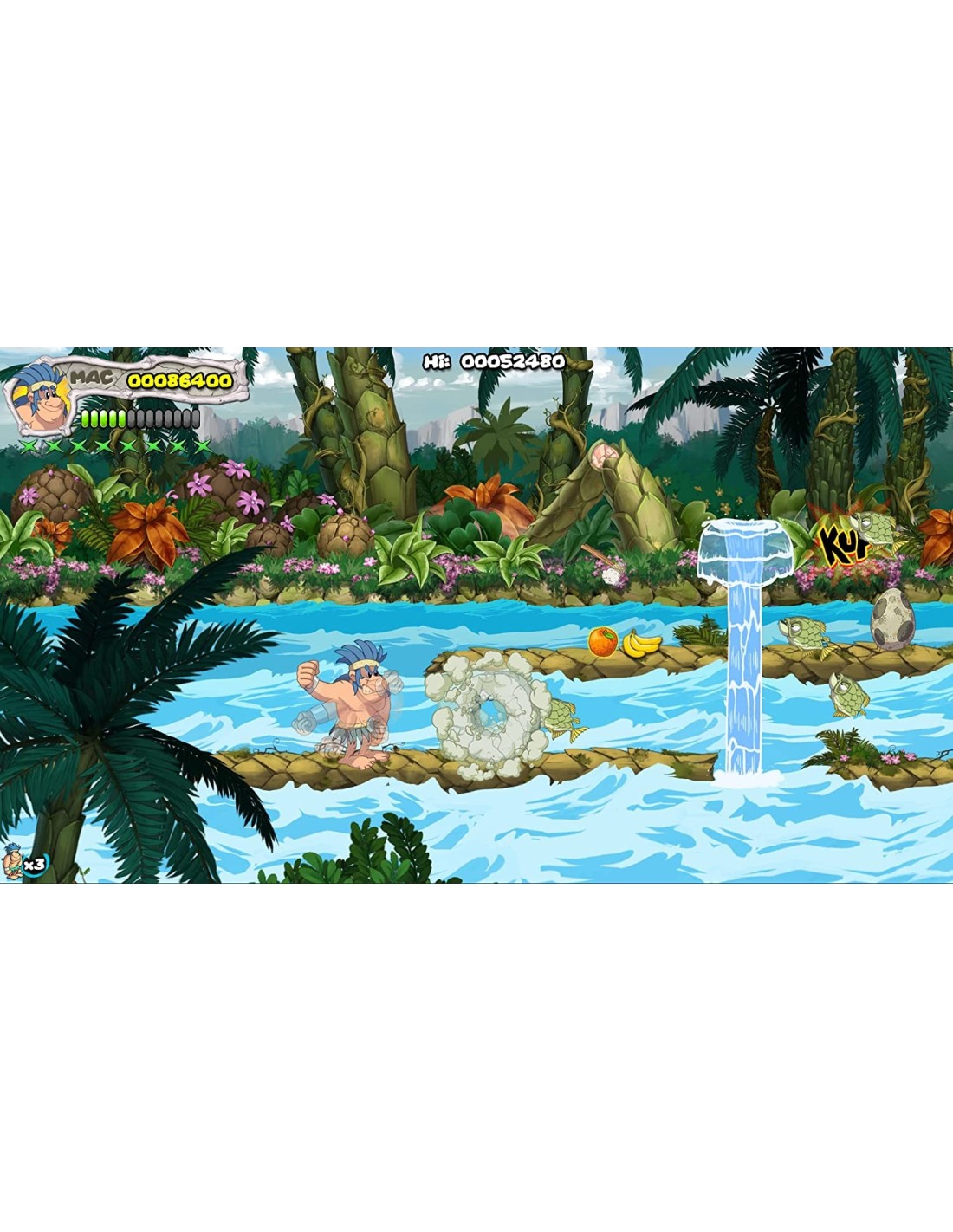 Joe y Mac tienen que salvar a todas las mujeres de su pueblo, luchando contra dinosaurios y plantas carnívoras de la época jurásica.