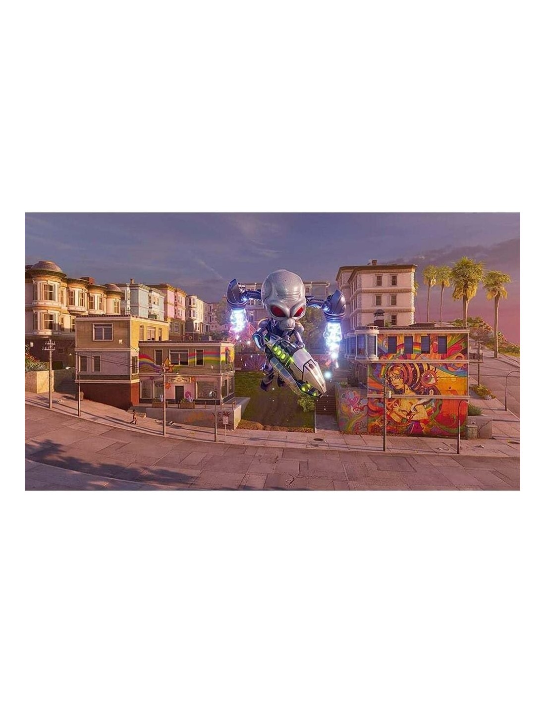 Viaja por ciudades ficticias de todo el mundo, destruye todo a tu paso desde tu icónico platillo y captura humanos para crear cócteles de ADN que potencien tus habilidades alienígenas. La experiencia se vuelve aún más emocionante con un modo cooperativo local para dos jugadores con pantalla dividida, permitiendo disfrutar de toda la historia junto a un amigo.